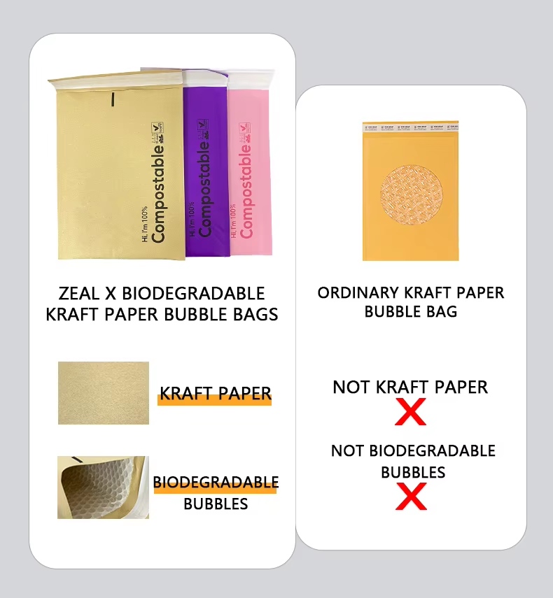 Як професійний виробник паперових пакетів, Zeal X пропонує повністю налаштовані біологічно розкладані бульбашки з крафт-паперу, включаючи нестандартні розміри, друк логотипу та варіанти ваги паперу. Ці компостовані листівки на 100% піддаються біологічному розкладанню, нетоксичні та не забруднюють, що робить їх ідеальними для стратегій сталого пакування. Завдяки міцній стійкості до розривів, легкому дизайну та надійному захисту для експрес-доставки нашим розсилкам із бульбашками з крафт-паперу довіряють міжнародні продавці електронної комерції, які шукають екологічні рішення для доставки без використання пластику.