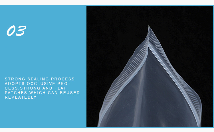 Характеристика: Пакети Ziplock, які можна закривати, довговічні та міцні, нетоксичні, несмачні, не містять кислоти, мають чудову водонепроникну ізоляцію та можуть бути на 100% перероблені та безпечні для навколишнього середовища.