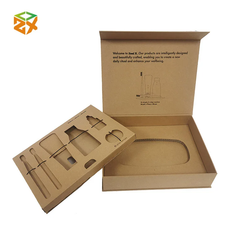 Магнітна коробка з крафт-паперу Zeal X виготовлена з FSC-сертифікованого високоякісного картону, міцного, надійного та довговічного, простого кольору крафт-паперу, з чорним логотипом, бренд є особливо помітним, простим і високоякісним. Ця порожня подарункова коробка з двосторонньою прихованою магнітною печаткою дозволяє легко відкривати та закривати подарункову коробку неодноразово. Інтер'єр може бути налаштований відповідно до необхідності зберігання товарів одного типу картонного лотка, підвищена безпека. Магнітна подарункова коробка досить міцна, щоб її можна було повторно використовувати, її потрібно лише обережно протерти сухою тканиною, щоб відновити блиск. Наші подарункові коробки з КРИШКАМИ ідеально підходять для упакованих подарунків. Підходить для святкового та щоденного пакування ділових подарунків, подарунків до Дня матері, подарунків на День подяки, різдвяних подарунків, подарунків на день народження, весільних подарунків. Підходить для туалетних приналежностей, косметичних наборів, суконь, сорочок, художніх принтів тощо.
