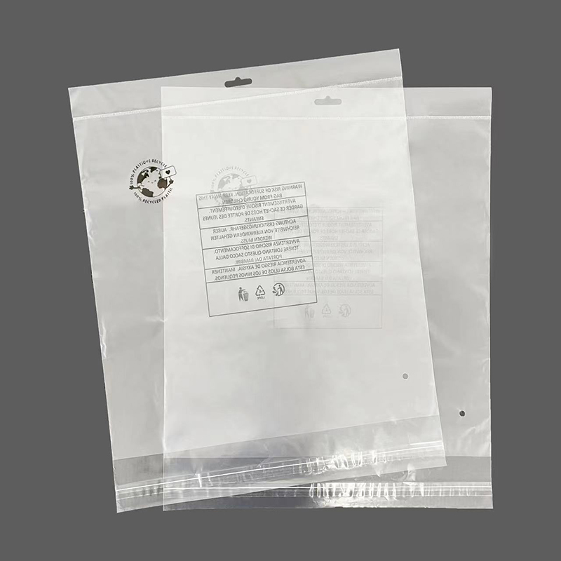 На додаток до своїх екологічних переваг,Підвісна сумка з переробленого LDPEможна повністю налаштувати за допомогою логотипів брендів, розмірів і параметрів товщини. Це робить його ідеальним вибором для брендів одягу, сувенірних магазинів і інтернет-магазинів, які шукають індивідуальні рішення для упаковки, які покращують як захист продукту, так і візуальний ефект. Висока прозорість сумки забезпечує чітку видимість вмісту, тоді як міцне ущільнення та функція підвішування покращують зручність демонстрації в роздрібних магазинах.