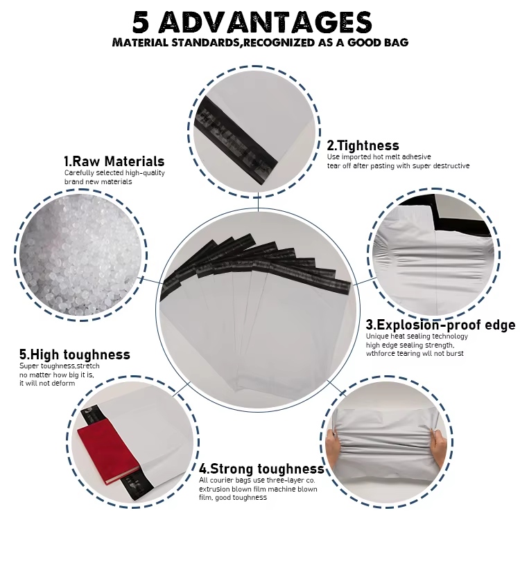 TheПП Полі Мейлерby Zeal X виготовлено з високоякісного нетоксичного, водонепроникного та водонепроникного поліетилену (ПЕ), який підлягає переробці. Кожна сумка ретельно розроблена для захисту продуктів під час транспортування та мінімізації відходів. Його стійка до розривів і вологостійка структура гарантує, що ваші товари будуть доставлені безпечно та професійно. Це робить його ідеальним вибором упаковки для брендів одягу, інтернет-магазинів і логістичних компаній у всьому світі.
